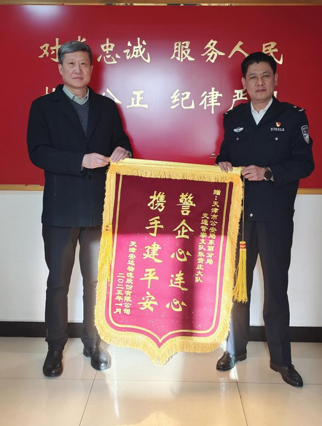 20日2025-01近日,天津安達物流股份有限公司總經(jīng)理鄭玉強攜副總經(jīng)理施鵬到訪(fǎng)天津市公安局東麗分局交通警察支隊張貴莊大隊,與大隊長(cháng)郭劍城進(jìn)行了一場(chǎng)親切且富有成效的交流。 交流過(guò)程中,鄭玉強首先向郭劍城大隊長(cháng)全面介紹了天津安達物流股份有限公司各業(yè)務(wù)板塊的發(fā)展現狀,展示了安達物流在行業(yè)內的穩健發(fā)展態(tài)勢,特別闡...[查看詳情]