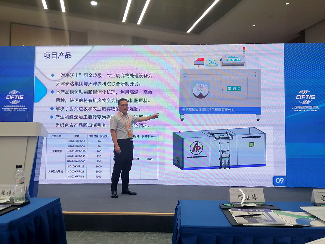 推介會(huì )上,鴻達精工副總經(jīng)理莊儒國詳細介紹了安達集團的最新綠色環(huán)保項目 —“泔凈沃土” 牌廚余垃圾及農業(yè)廢物處理設備。他通過(guò)深入闡釋兩大系列產(chǎn)品的應用與推廣優(yōu)勢,生動(dòng)而形象地還原了綠色低碳環(huán)保設備的卓越特性,并對該項目的閉環(huán)發(fā)展進(jìn)行了全面且細致的闡述。